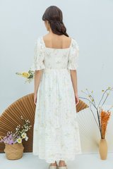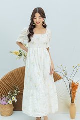 Amelie Smocked Puffy Sleeves Dress in Spring Florals