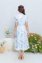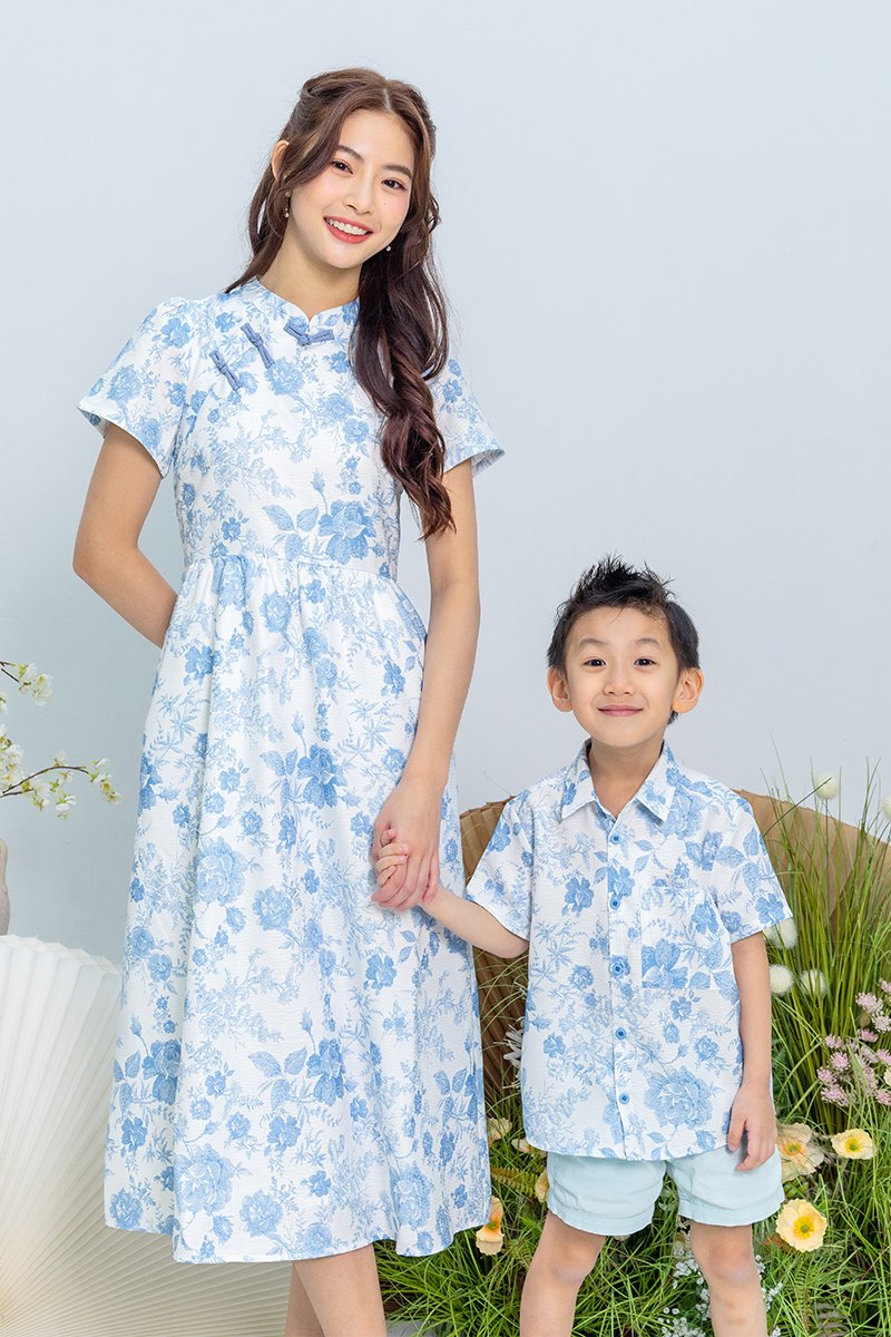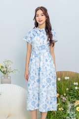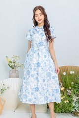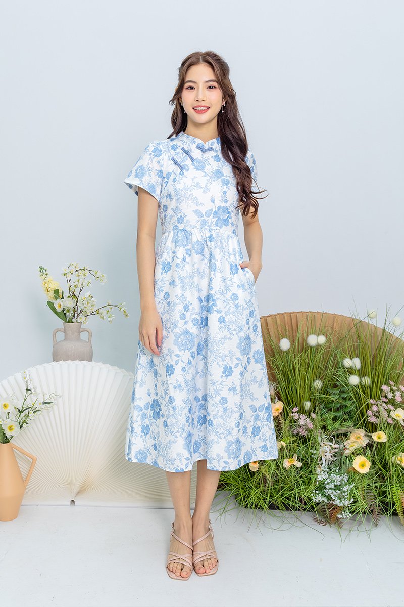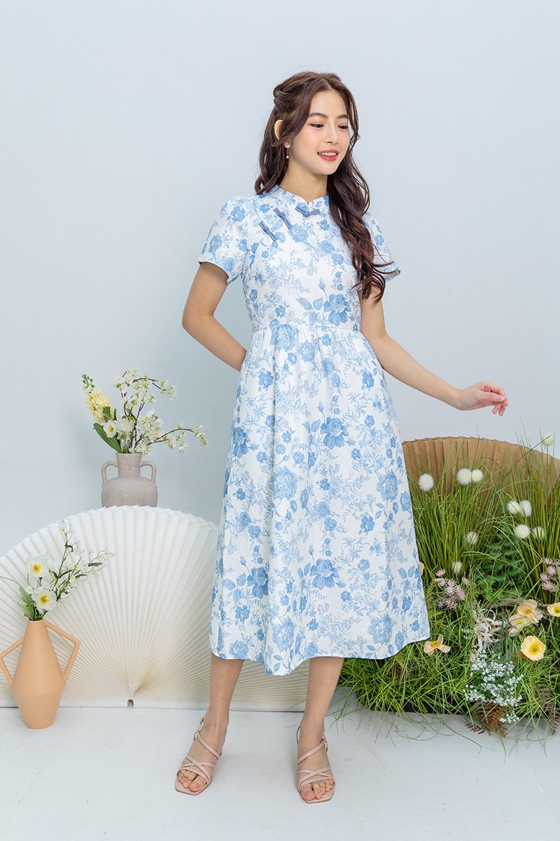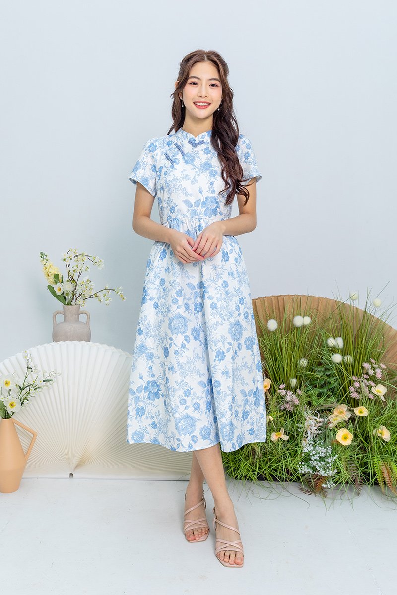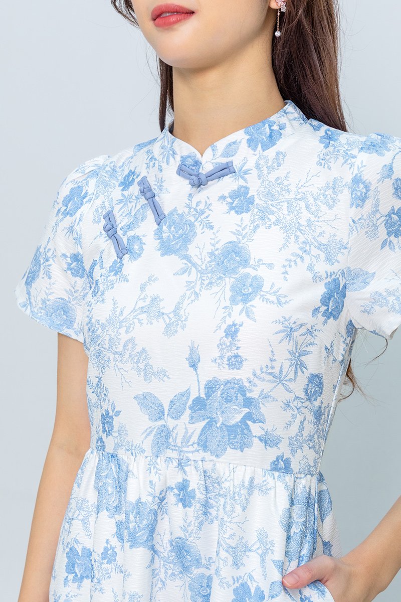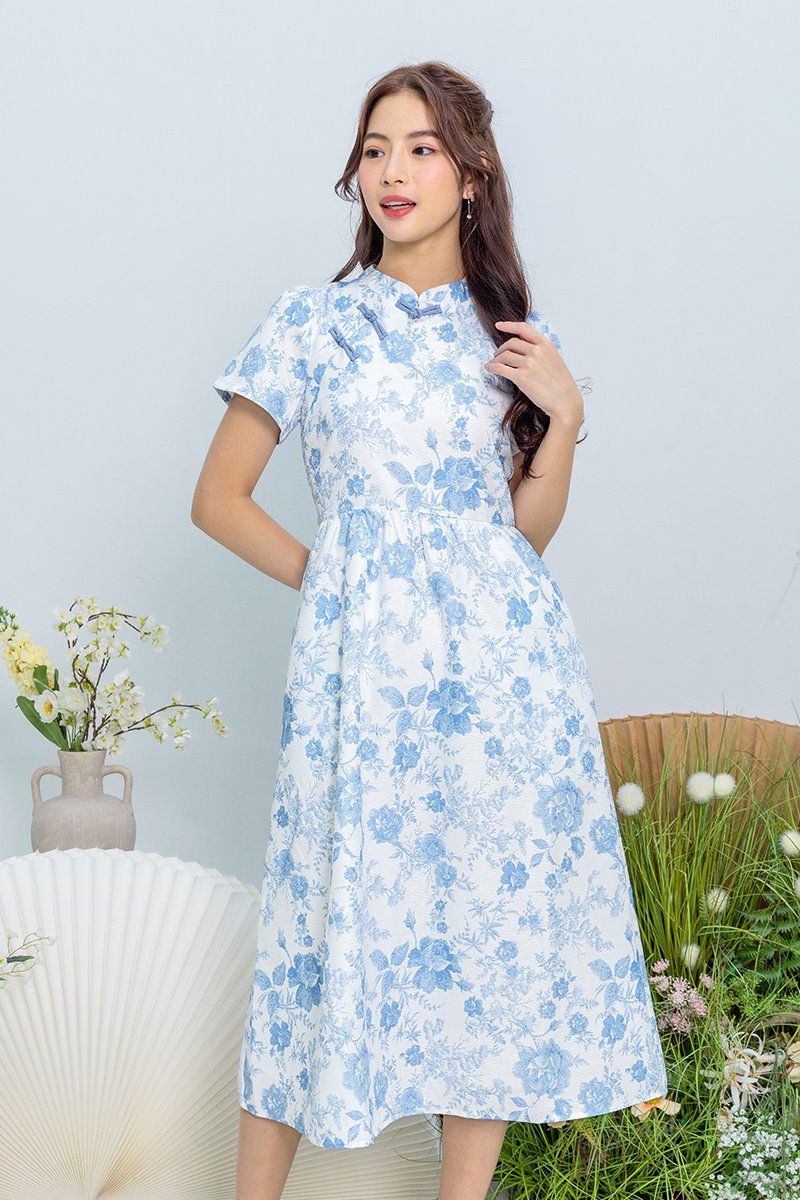 Bloom of Abundance Cheongsam Dress in Blue Porcelain