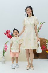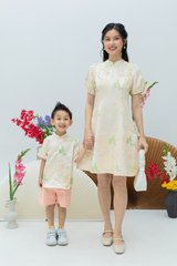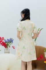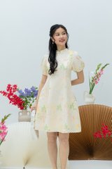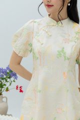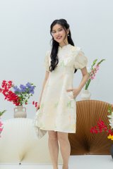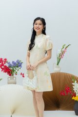 Crane of Prosperity Babydoll Dress in Champagne Silk