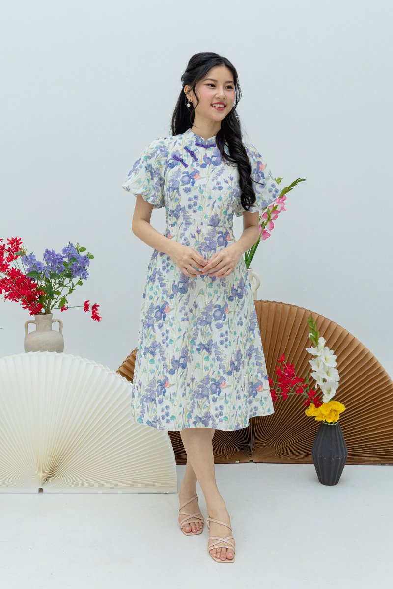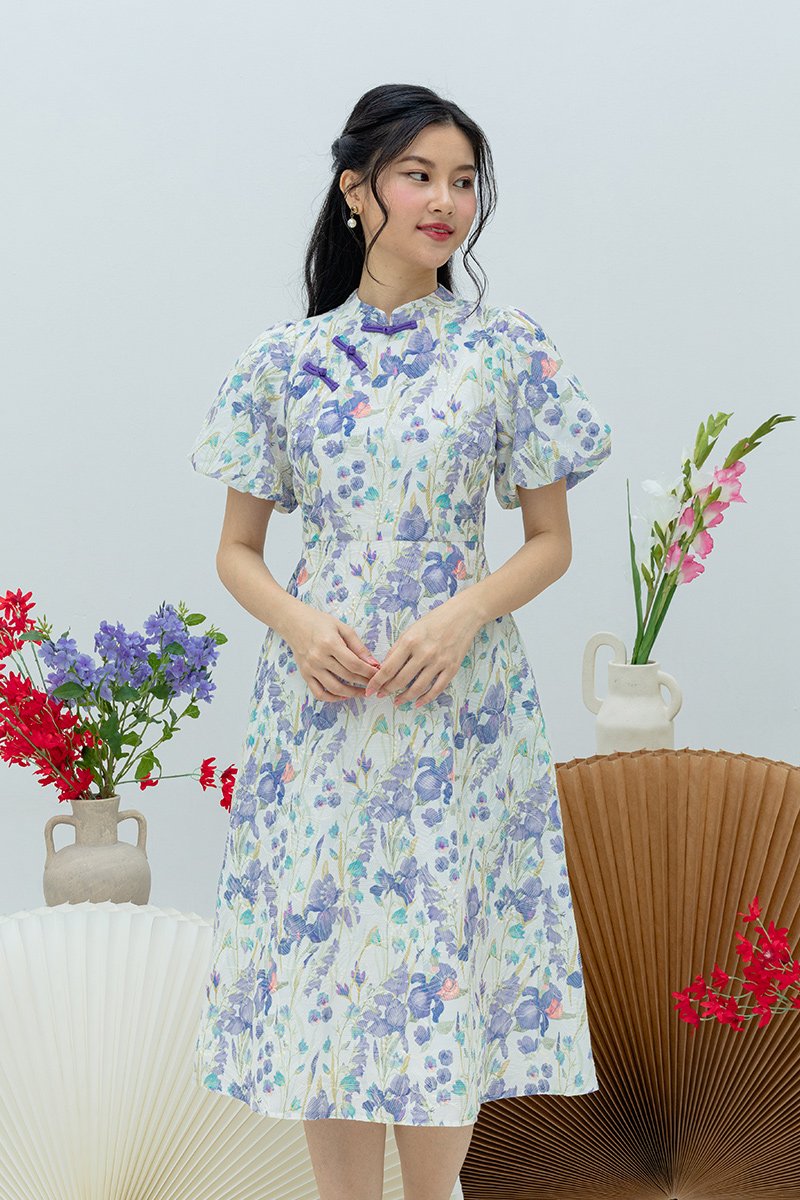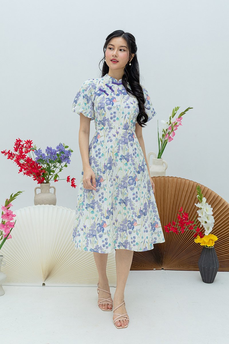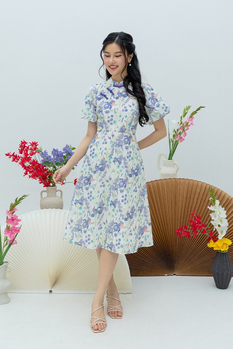 Eastern Blossom Cheongsam Dress in Purple