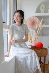 Model Ama is UK6, 1.68m and she wears size XS for this dress