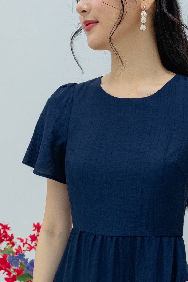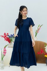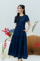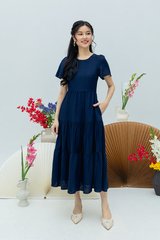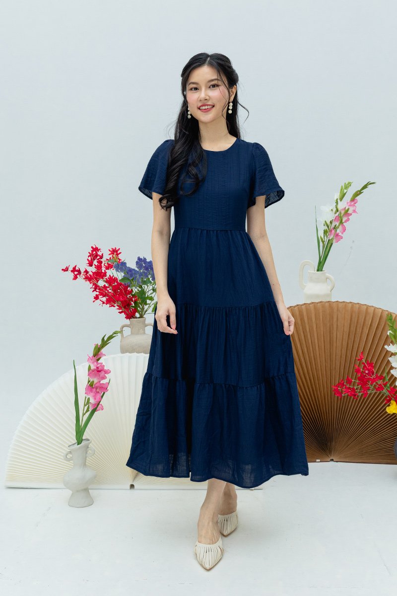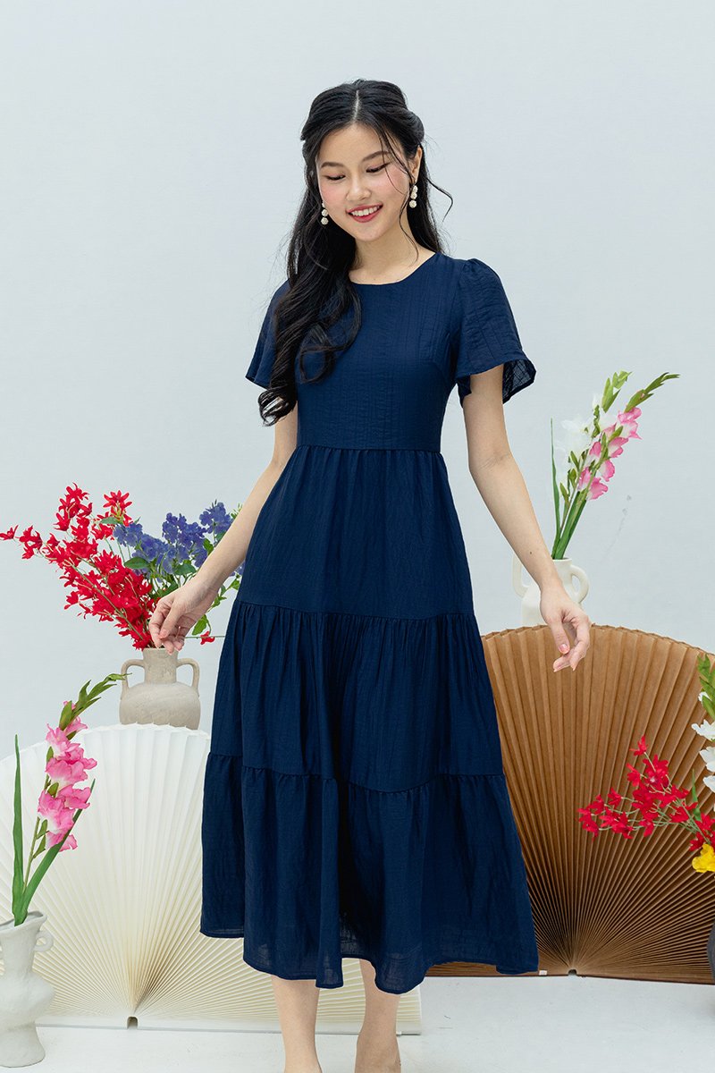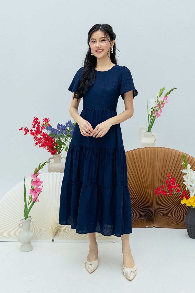 Elara Tiered Dress in Navy