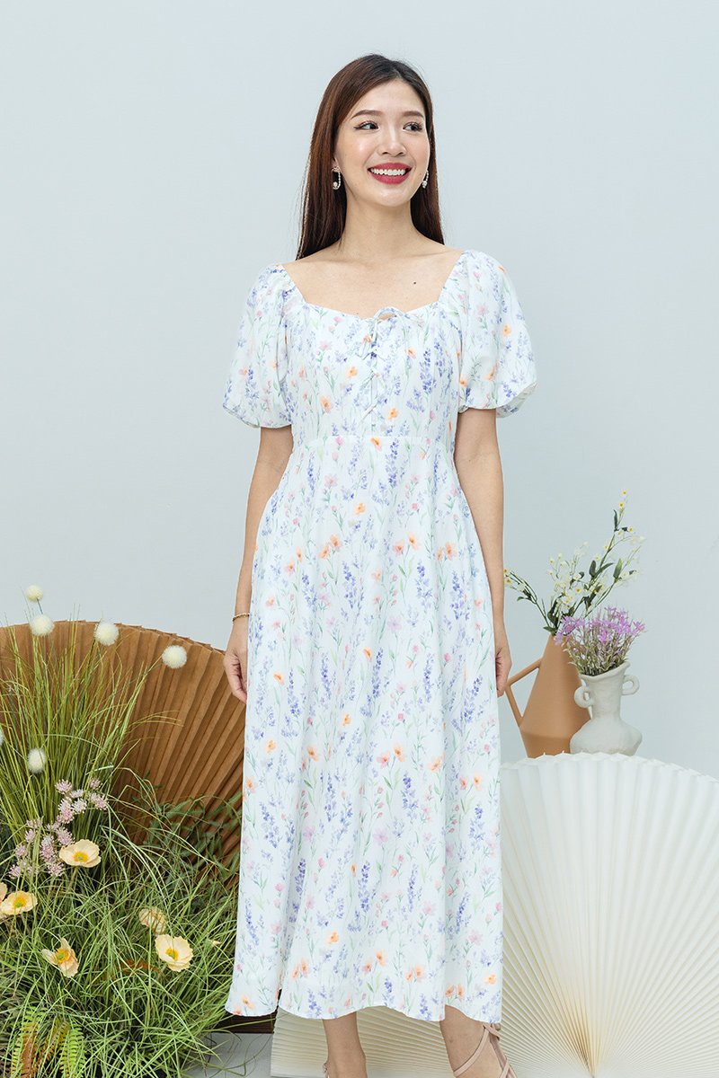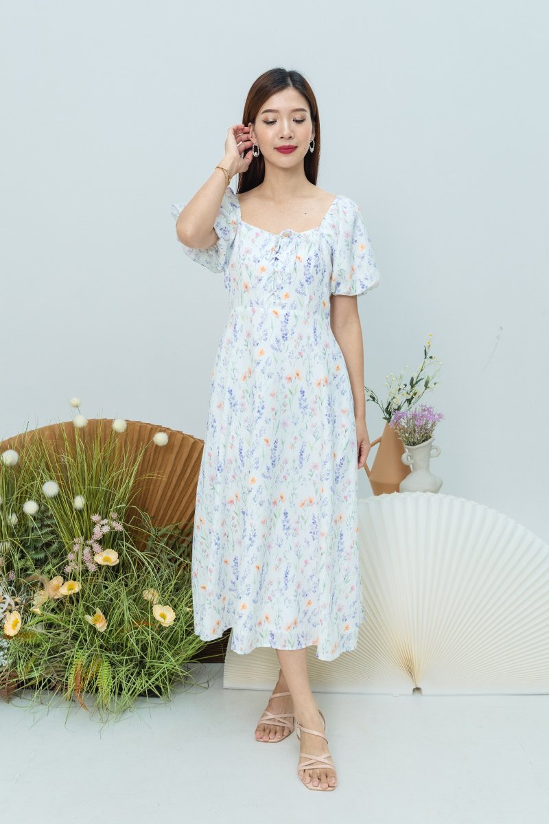 We think the highlight of this dress are the dainty lace-up detail at the chest area and the dreamy floral print!