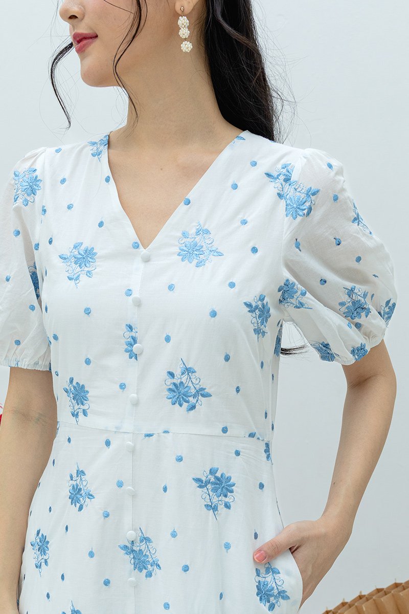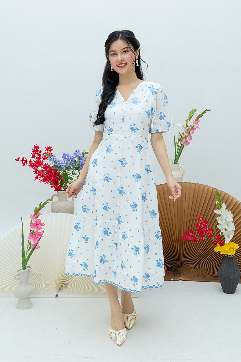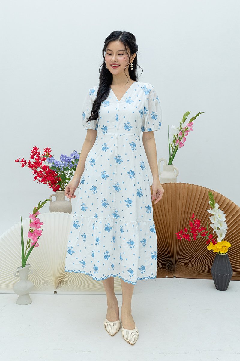 Luna Embroidery Button-Down Tiered Dress