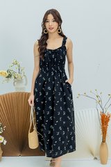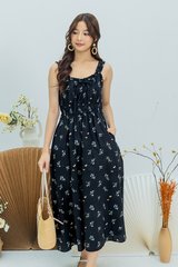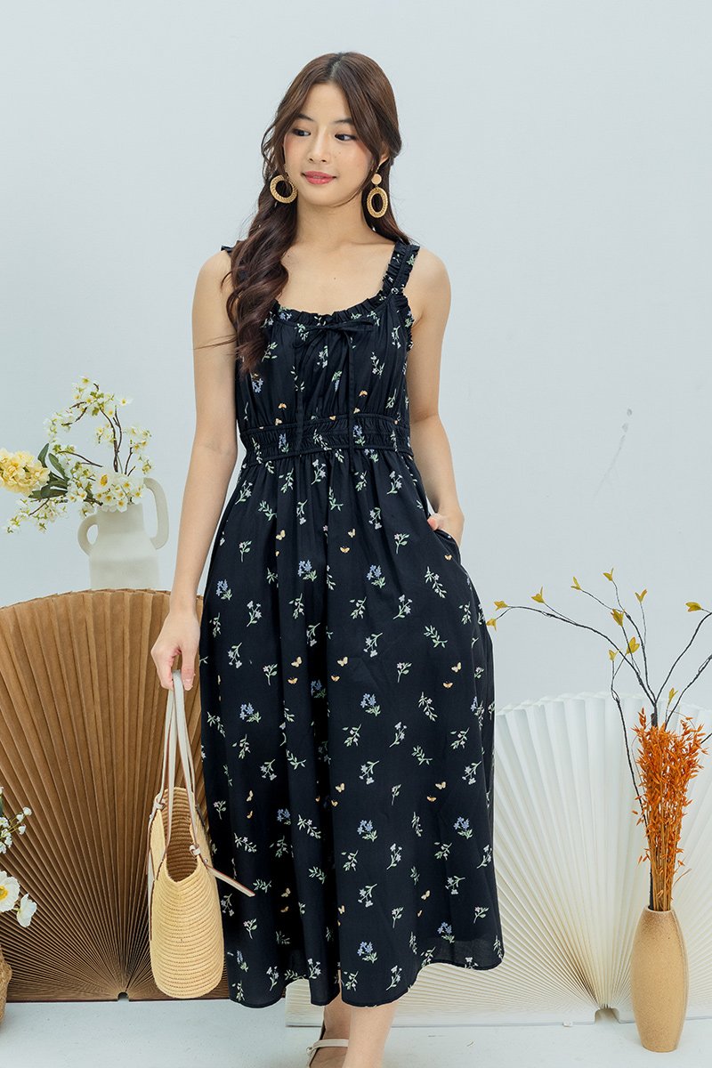 Designed with ruffle straps, a smocked waist for comfort, and side pockets, it’s an effortlessly chic piece that transitions seamlessly from day to evening.