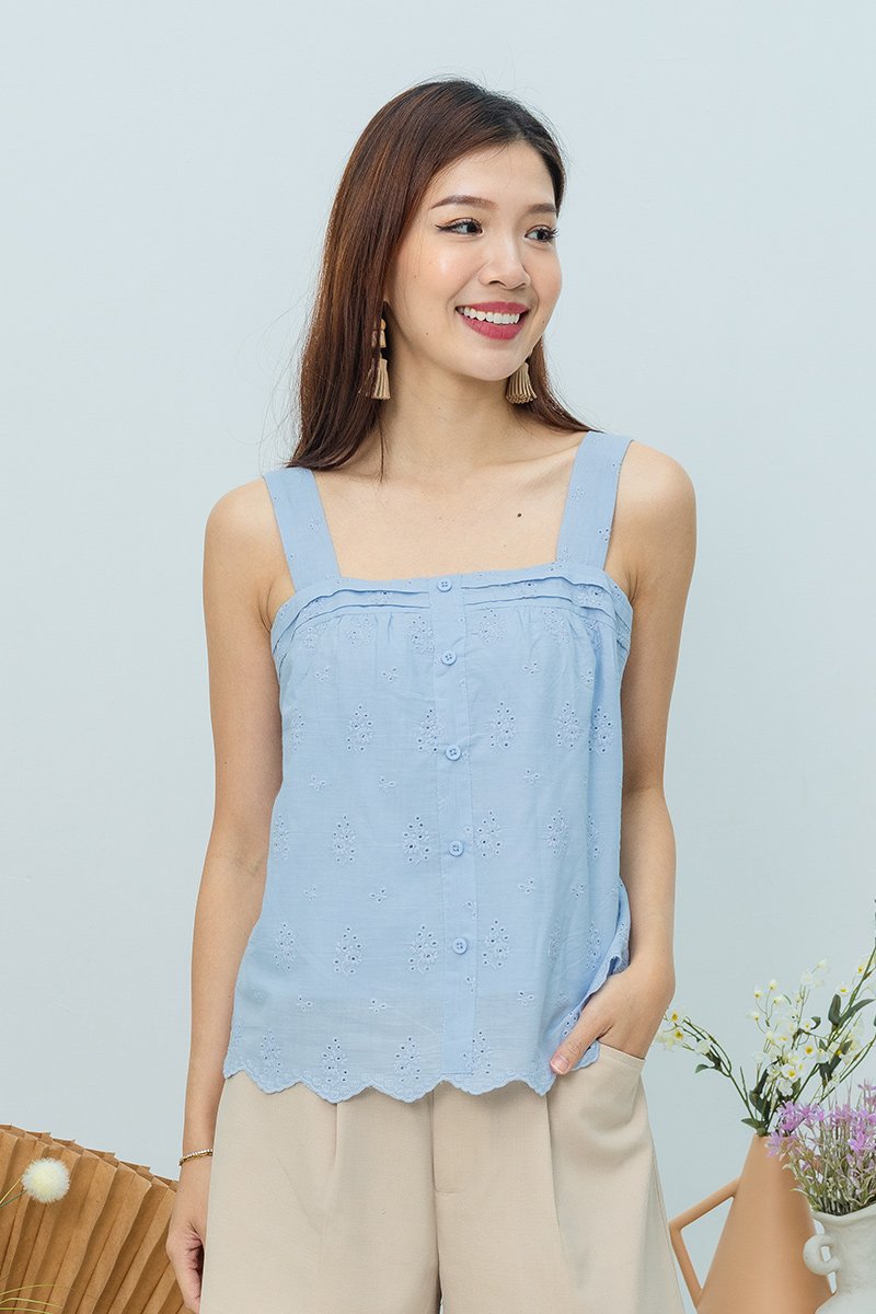 Aveline Eyelet Top in Baby Blue