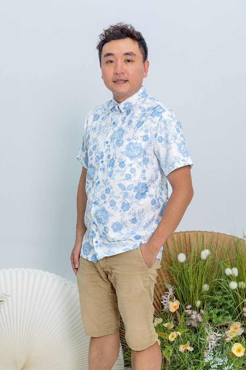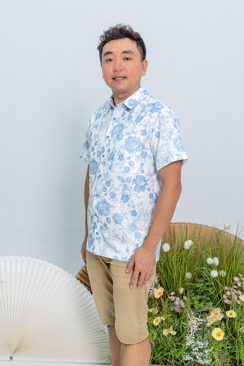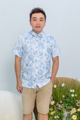 Bloom of Abundance Men's Shirt in Blue Porcelain