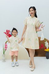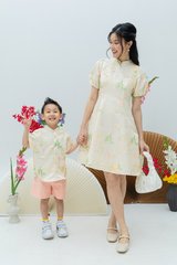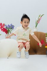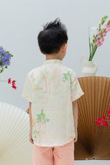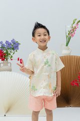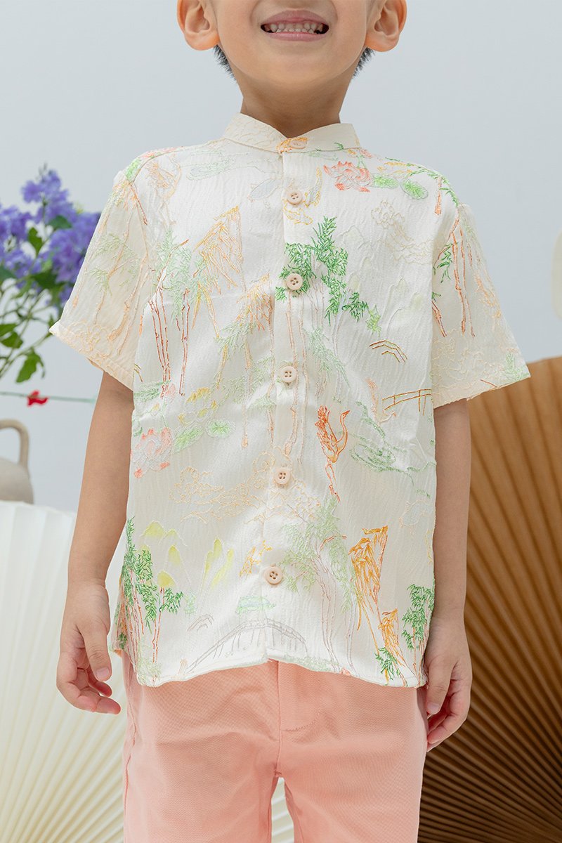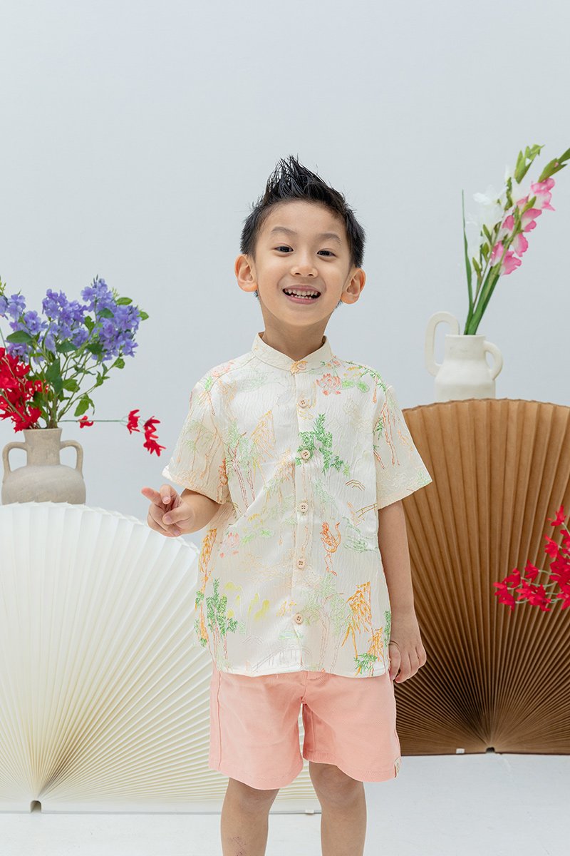 Classic mandarin collar button-down LNY top for boys, offering a polished and comfortable fit.