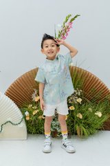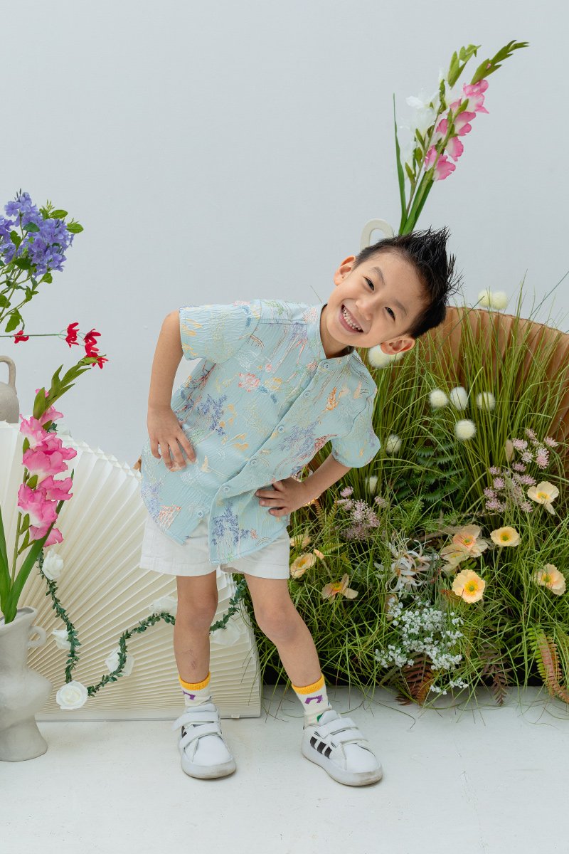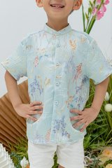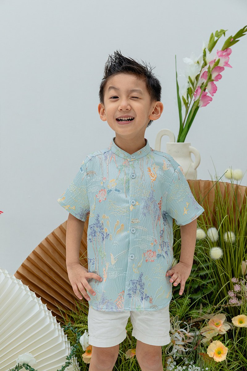 Crane of Prosperity Boy’s Shirt in Pastel Sky