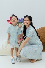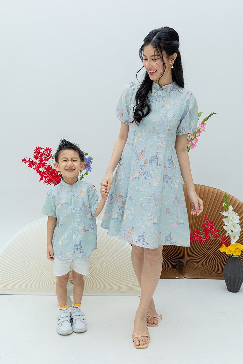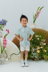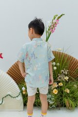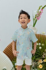 Classic mandarin collar button-down LNY top for boys, offering a polished and comfortable fit.