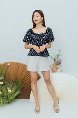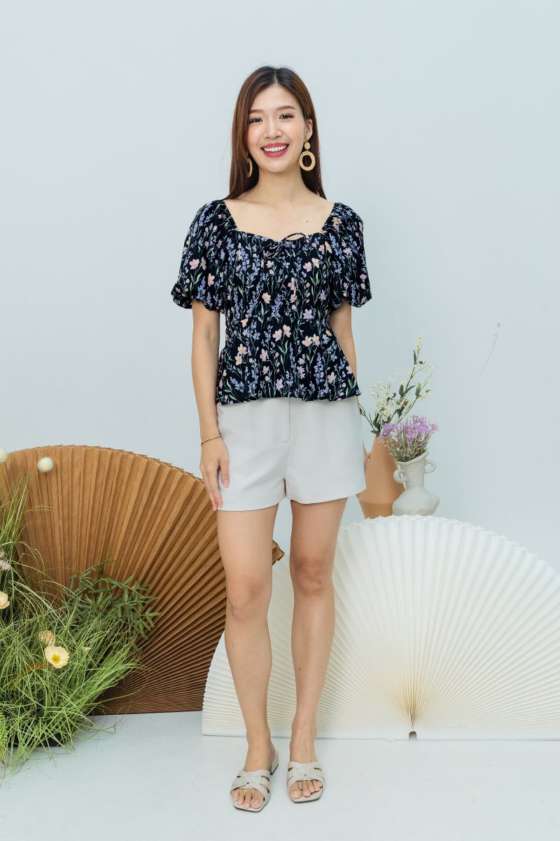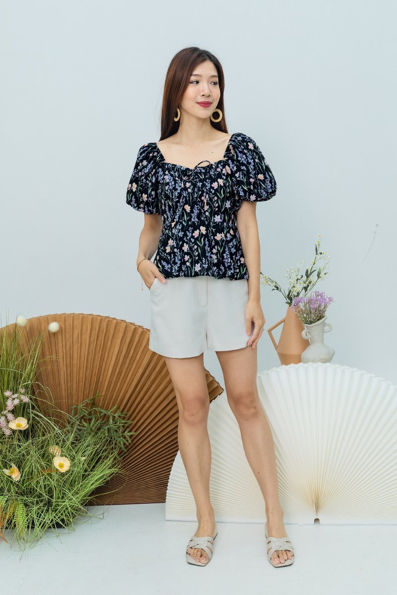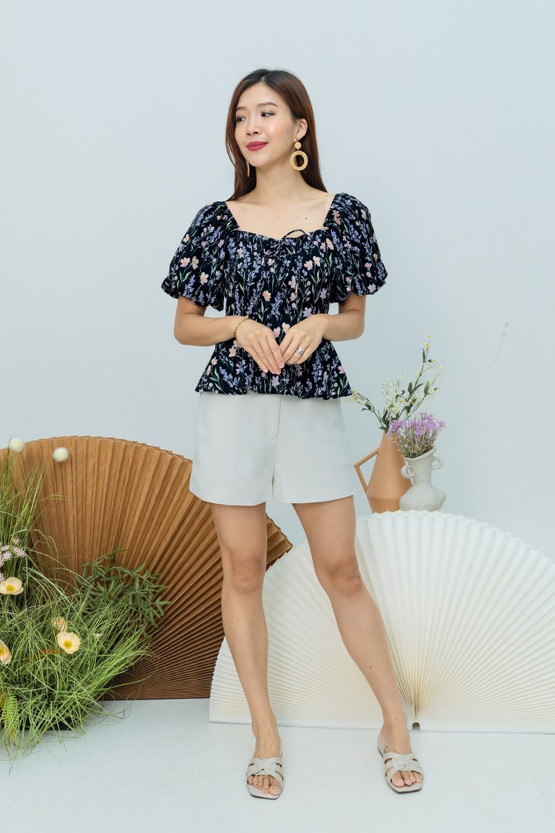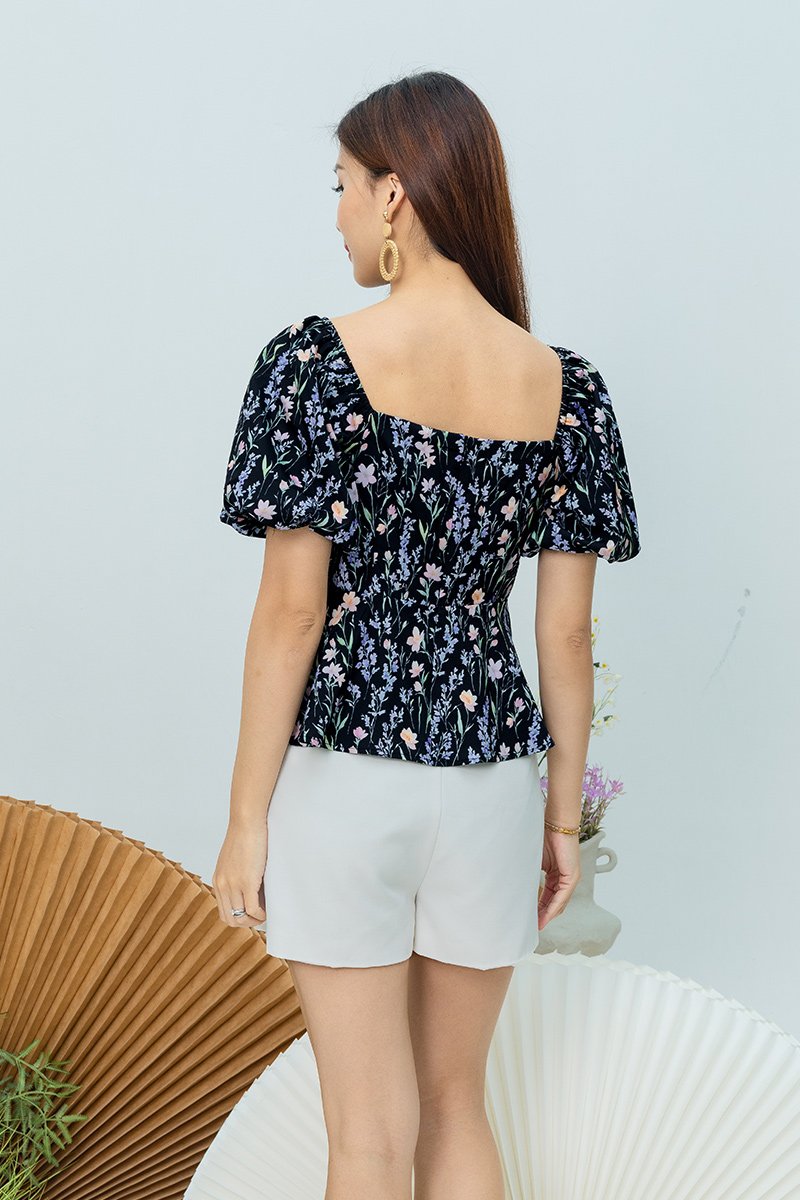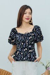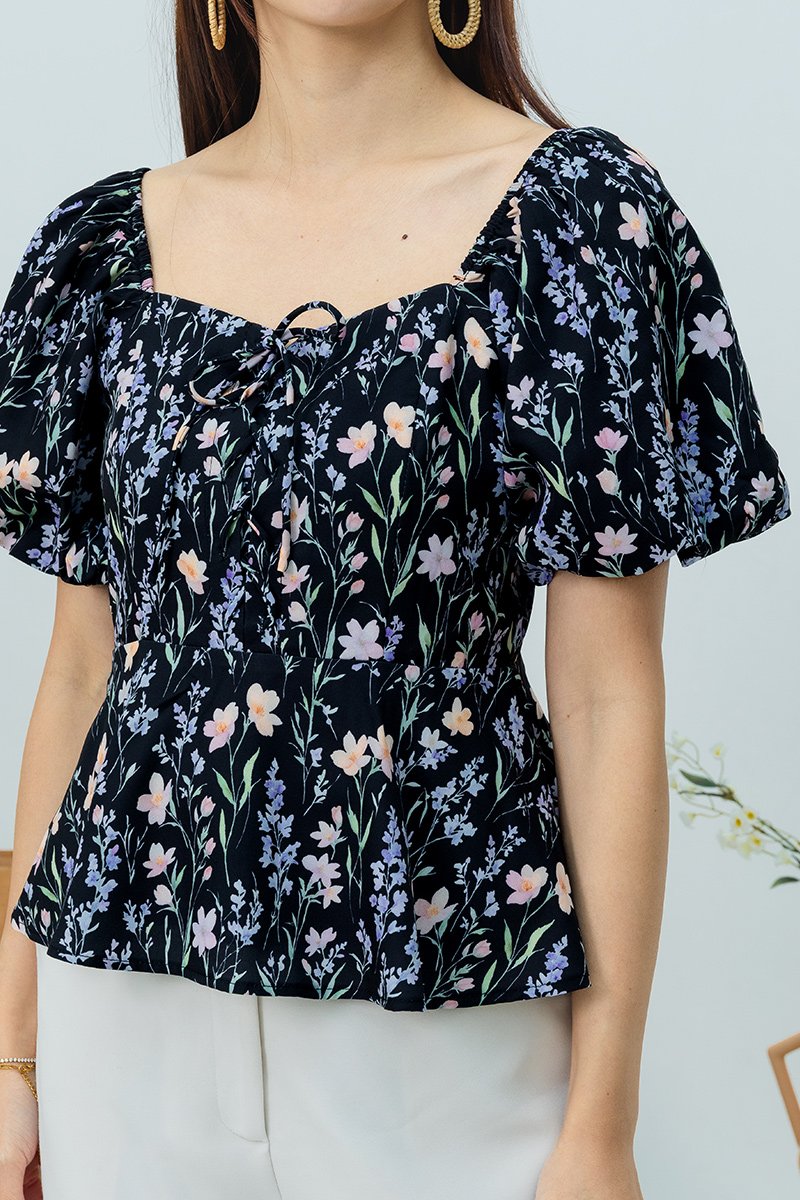 Garden Haze Lace Up Top in Black Florals