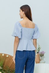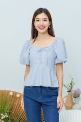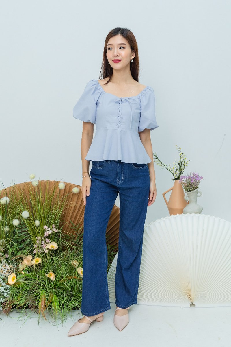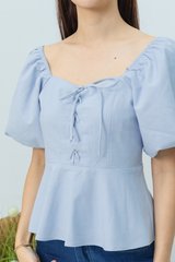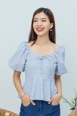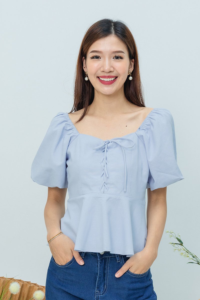 Garden Haze Lace Up Top in Solid Powder Blue