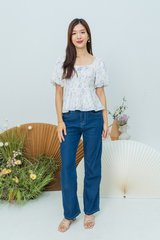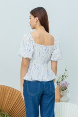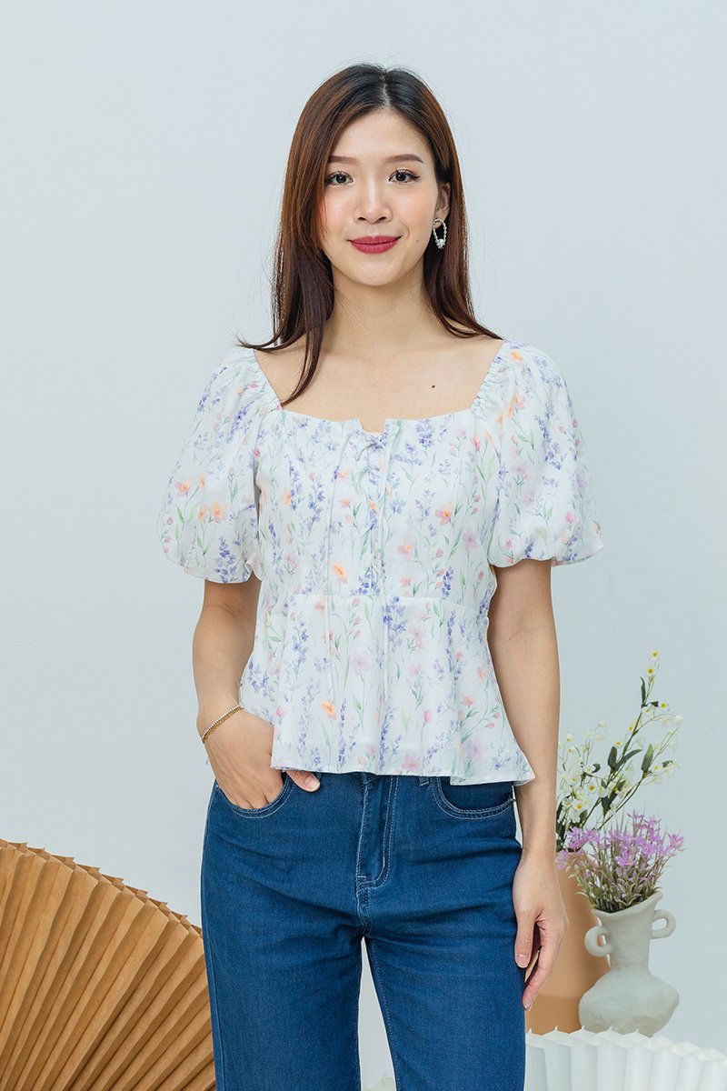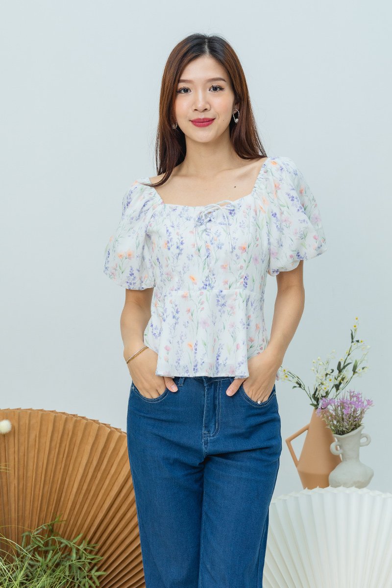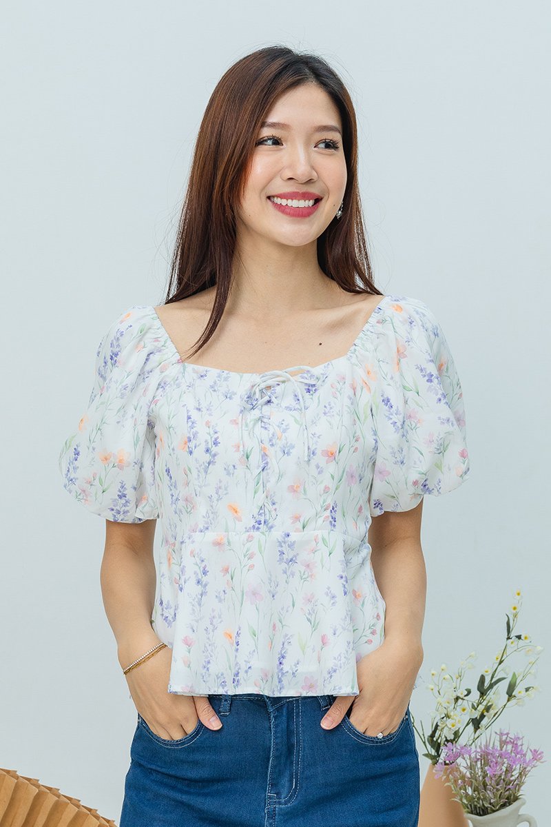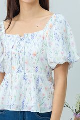 Garden Haze Lace Up Top in White Florals